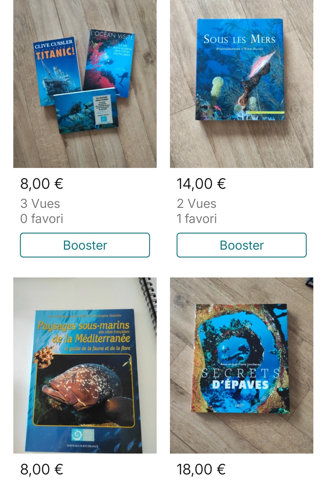 Lots de livres en lien avec la plongee
